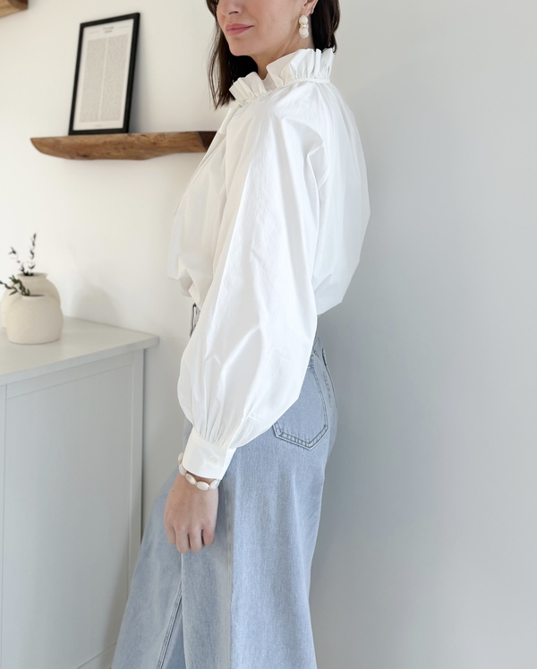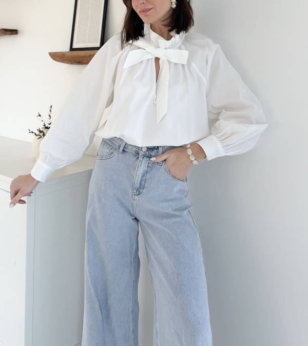 Blouse blanche Col victorien Noeud à nouer sur le devant Manches longues