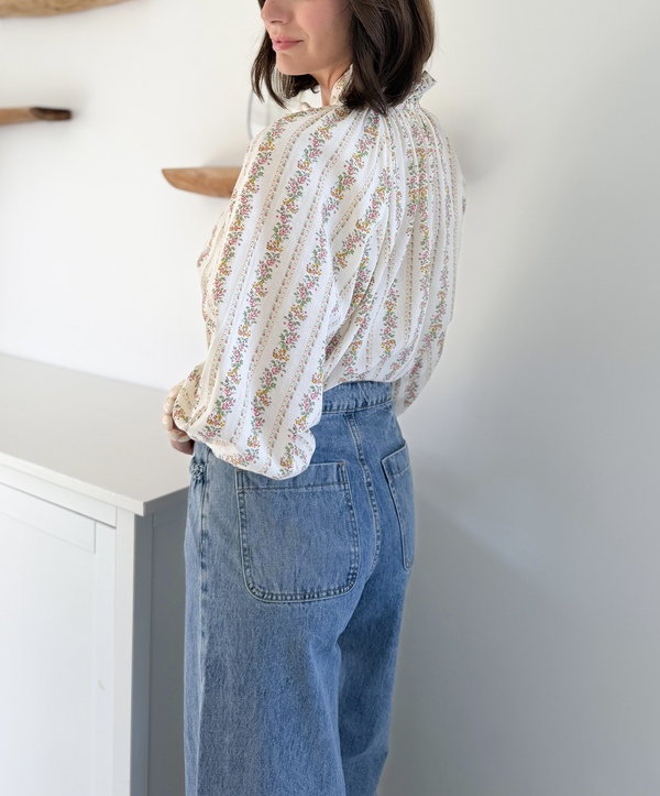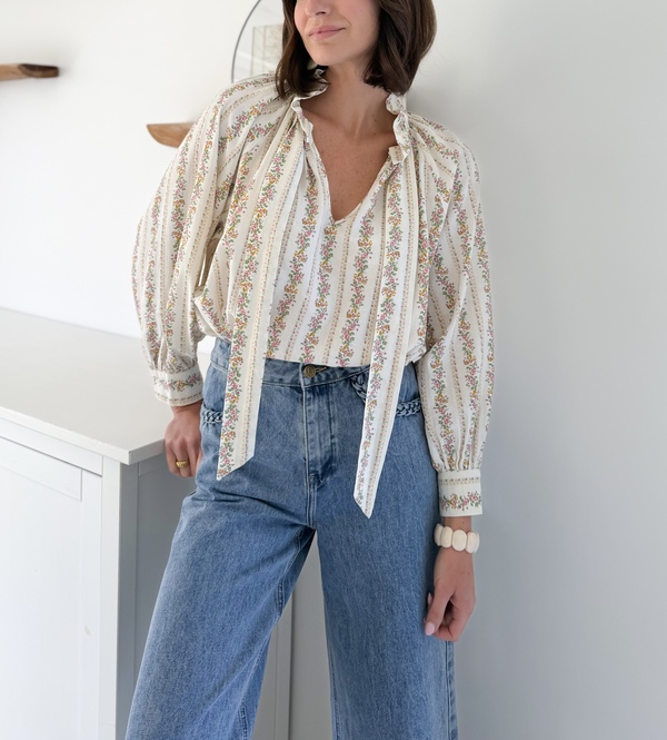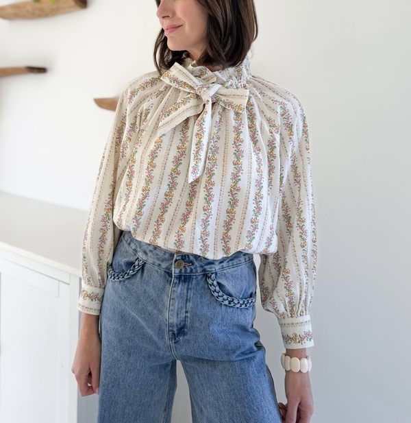 Blouse fleurie Col victorien Noeud à nouer sur le devant Manches longues