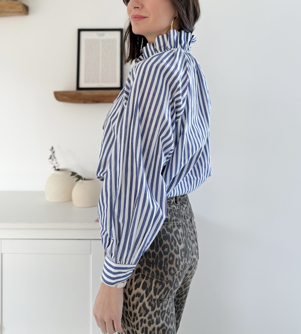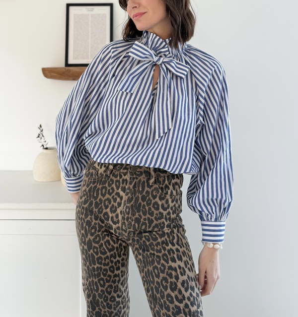 Blouse rayée Col victorien Noeud à nouer sur le devant Manches longues