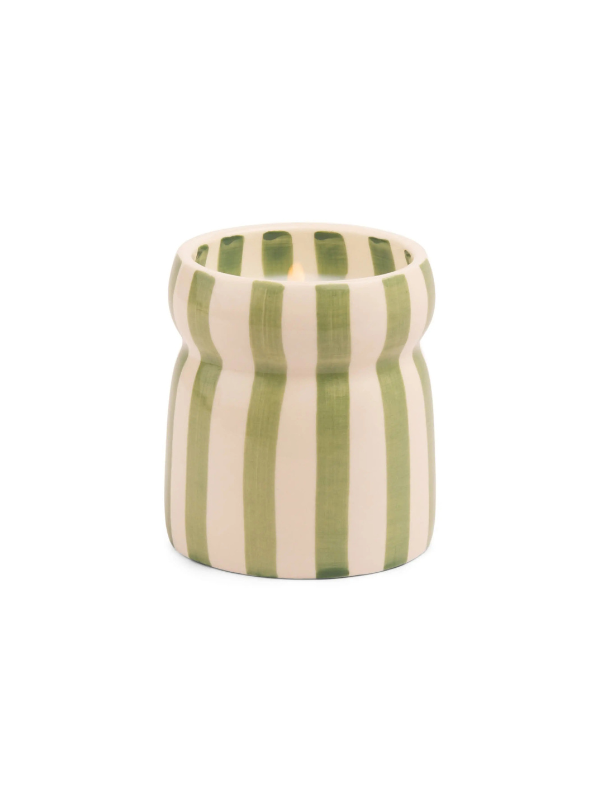 Transportez-vous sur les plus belles plages du monde avec la bougie Cabana Bora Bora de Paddywax. Chaque bougie est conçue pour évoquer les parfums apaisants et transformateurs des destinations côtières. Ces bougies peintes à la main, inspirées de parapluies rayés, font 6,5 oz et présentent une forme pincée unique.