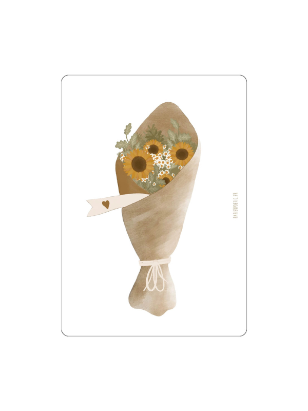 Carte « bouquet d’automne » créées, imprimées et préparées en France. Impression sur Papier Aquarelle 300g, format A6 avec coins arrondis. Livrée avec enveloppe recyclée kraft et pochette protectrice.