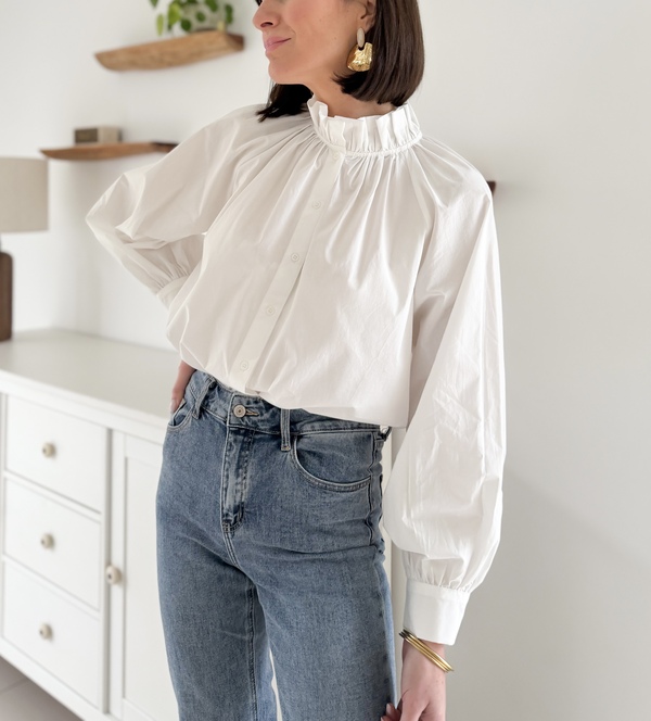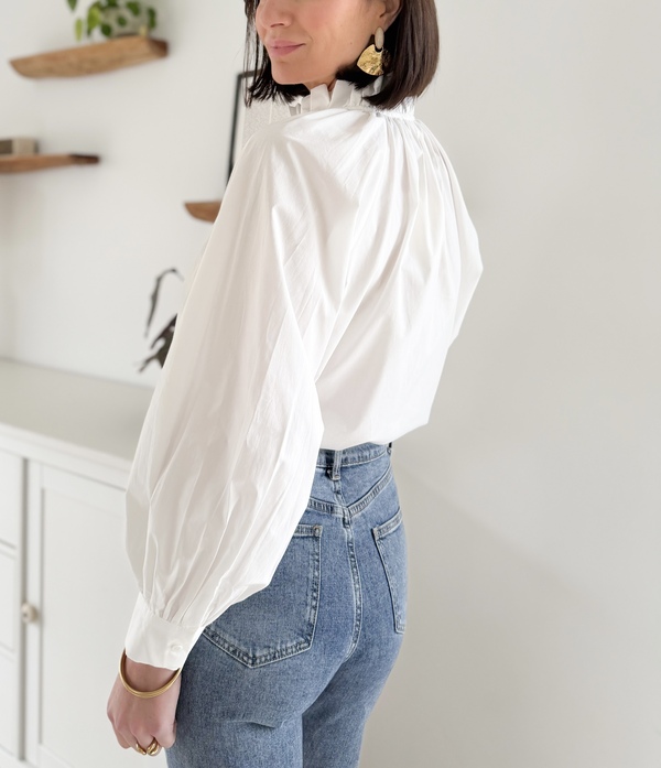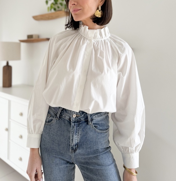 Chemise blanche Col victorien Manches longues Entièrement boutonnée