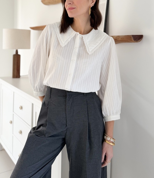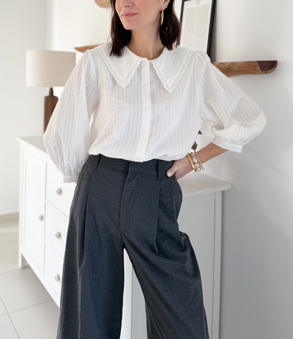 Chemise blancheCol ClaudineDétails brodés sur le colManches 3/4Boutons nacrés