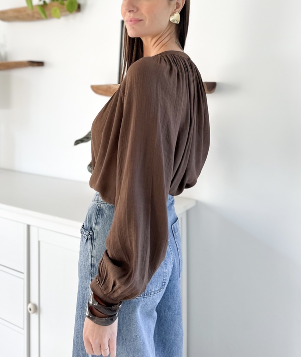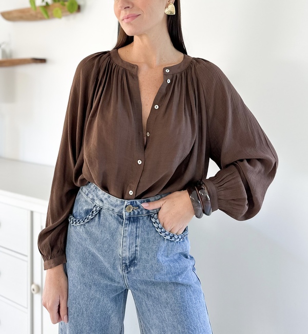 Chemise fluide marron chocolat Manches longues Encolure ronde