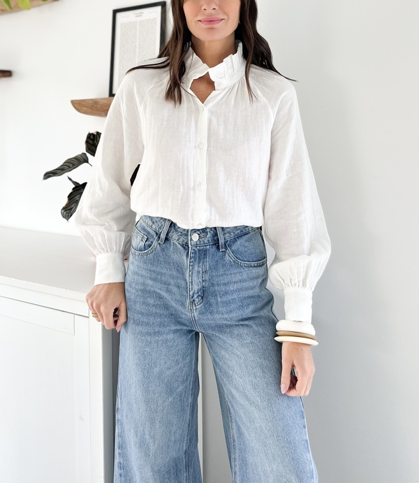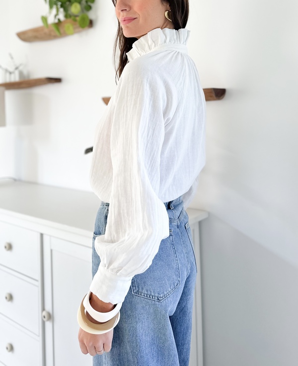 Chemise à manches longues Col victorien Coloris blanc Entièrement boutonnée