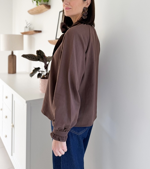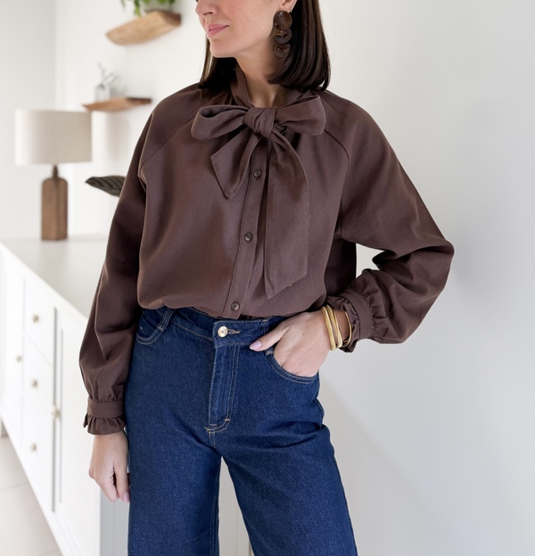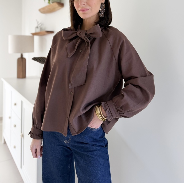 Chemise marron Manches longues Détails sur les poignets Nœud à nouer sur le devant Fermé par des boutons