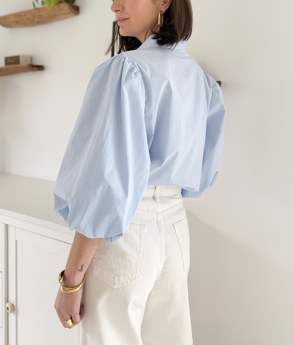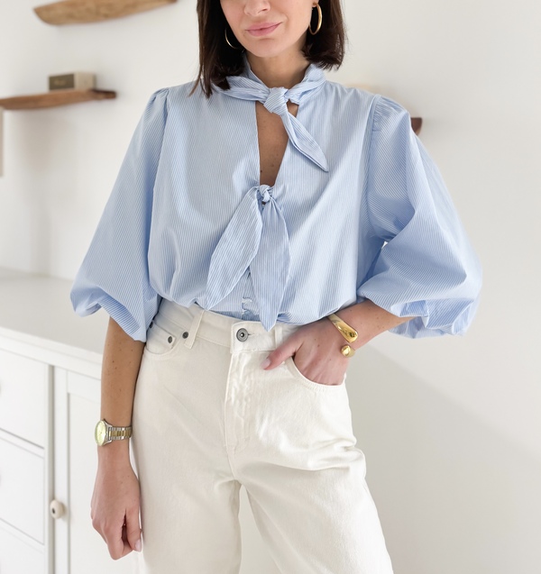 Chemise rayée à noeuds Manches mi-longues ballon Fermteture boutonnée