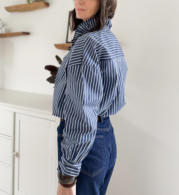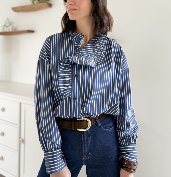 Chemise rayée à volants Patte de boutonnage sur le côté Col montant Coupe oversize