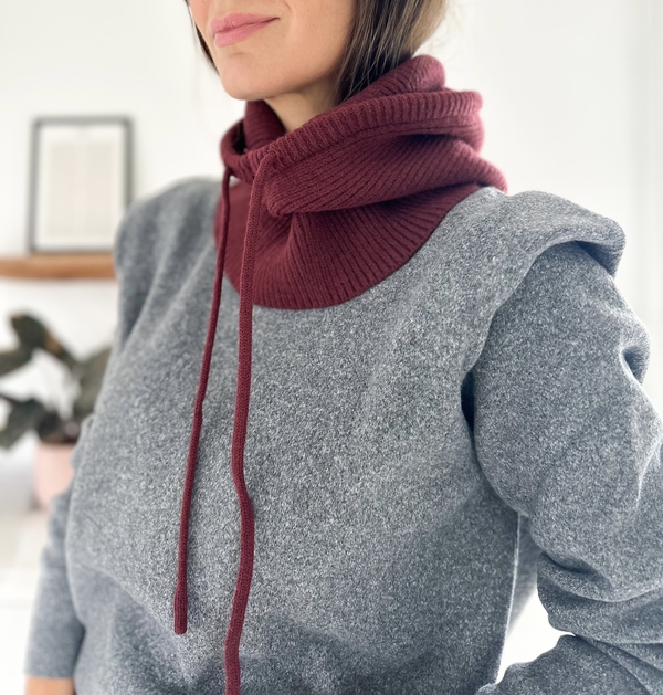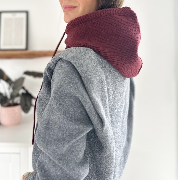 Col à capuche prune Tricotage en côtes perlées Liens ajustables