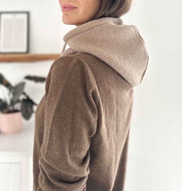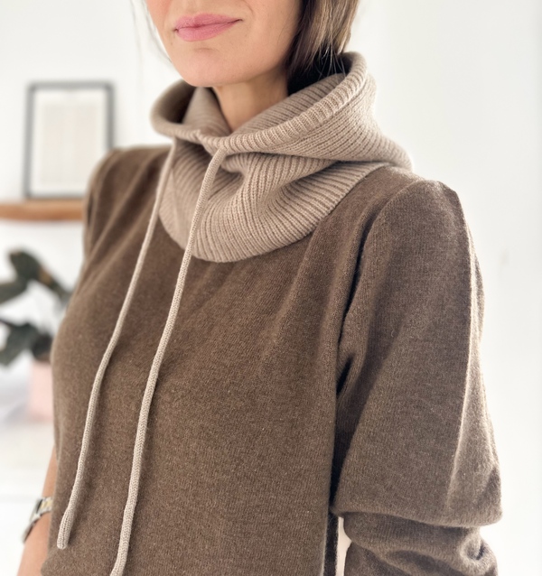 Col à capuche taupe Tricotage en côtes perlées Liens ajustables