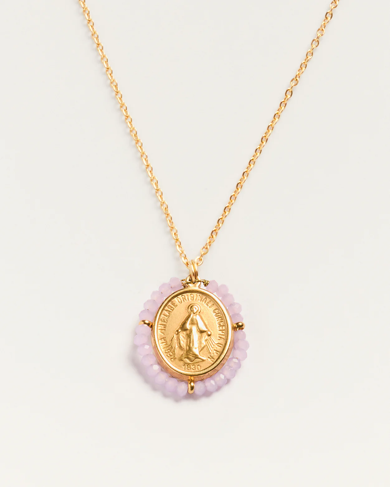 Le collier médaille Santa Maria Lilas de Palas est un bijou hypoallergénique qui se porte en toutes circonstances.