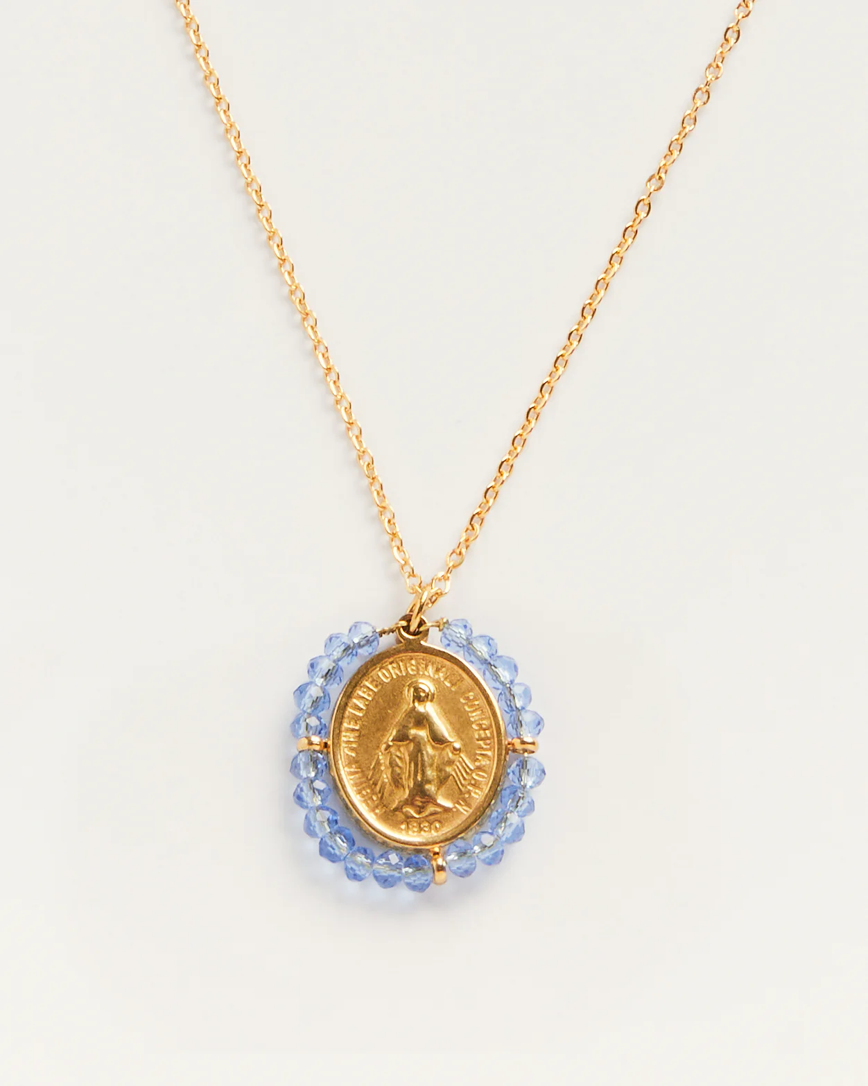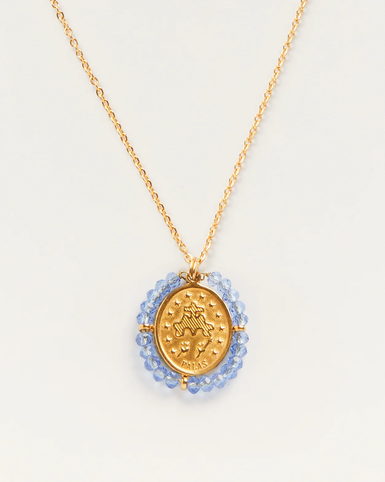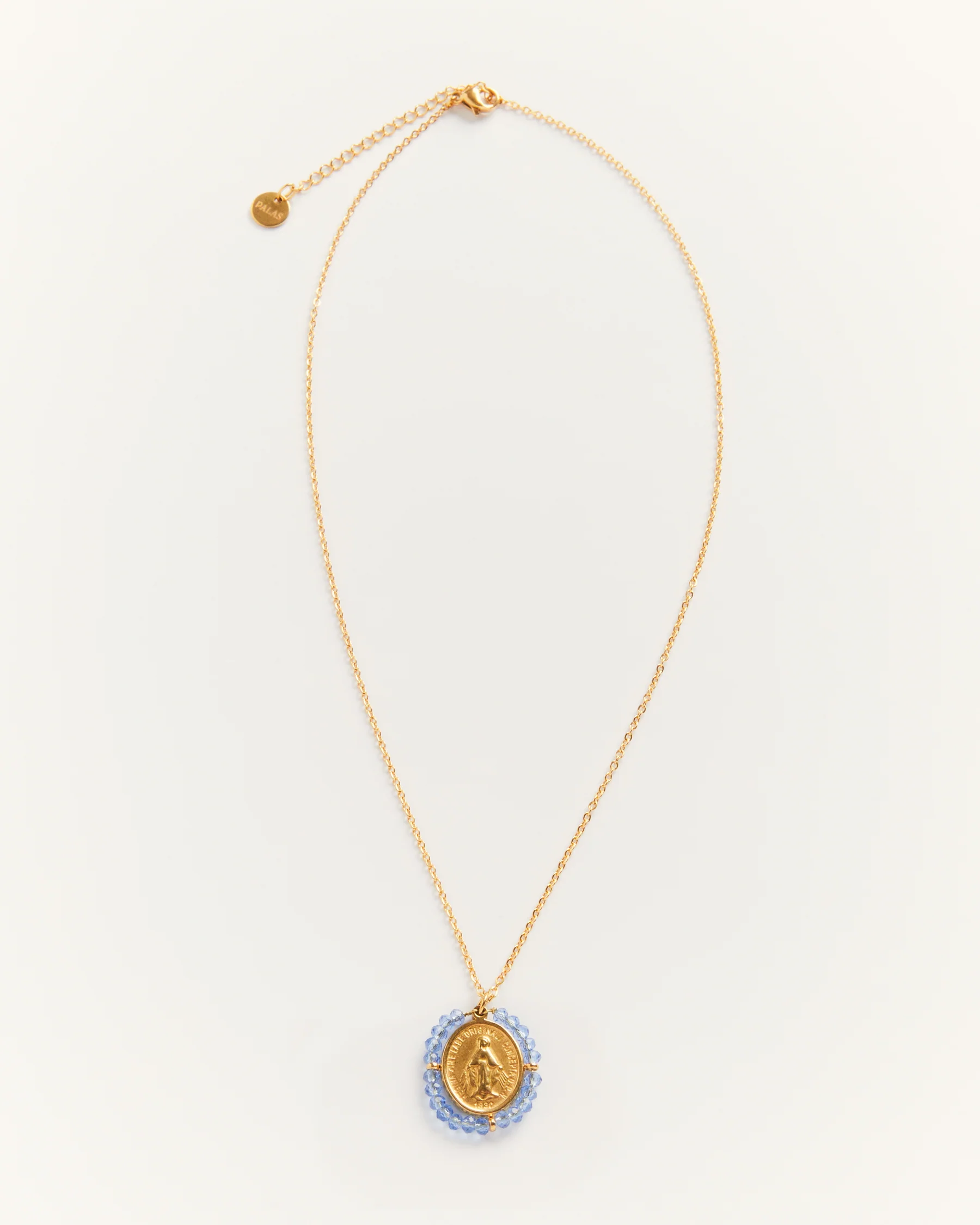 Le collier médaille Santa Maria Sky blue de Palas est un bijou hypoallergénique qui se porte en toutes circonstances.