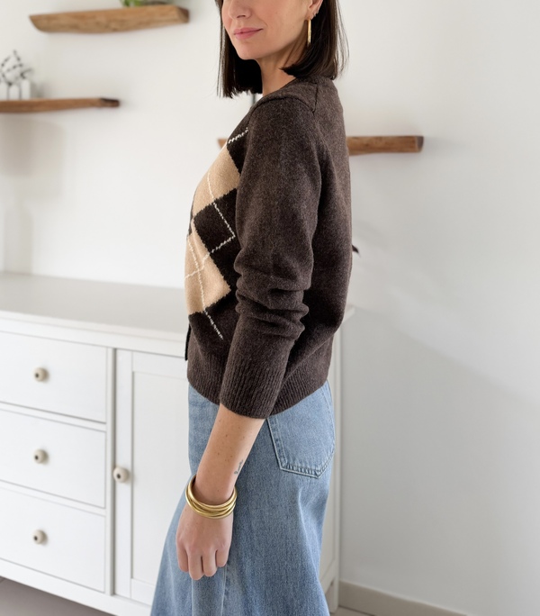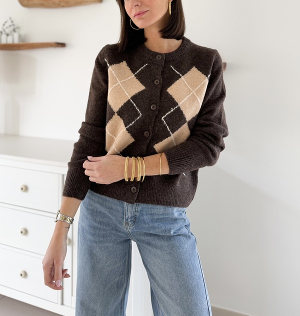 Gilet en maille jacquard Col rond Manches longues Fermeture à boutons