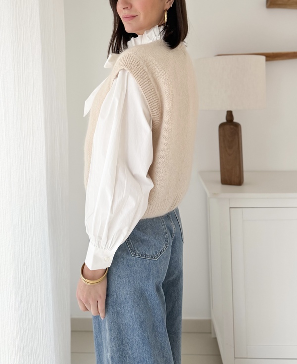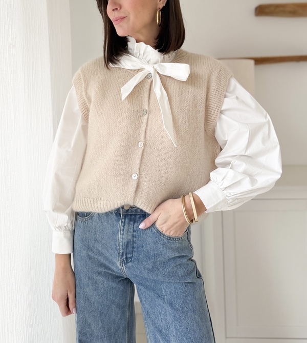 Gilet en maille sans manches Encolure ronde Entièrement boutonné Couleur beige
