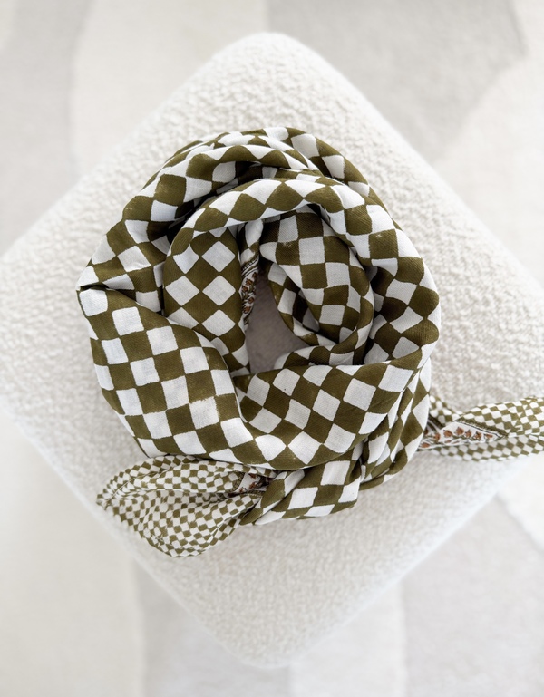 Foulard dessiné par Bellemme, imprimé et réalisé en Inde grâce à la technique du block Print, véritable savoir-faire ancestral.