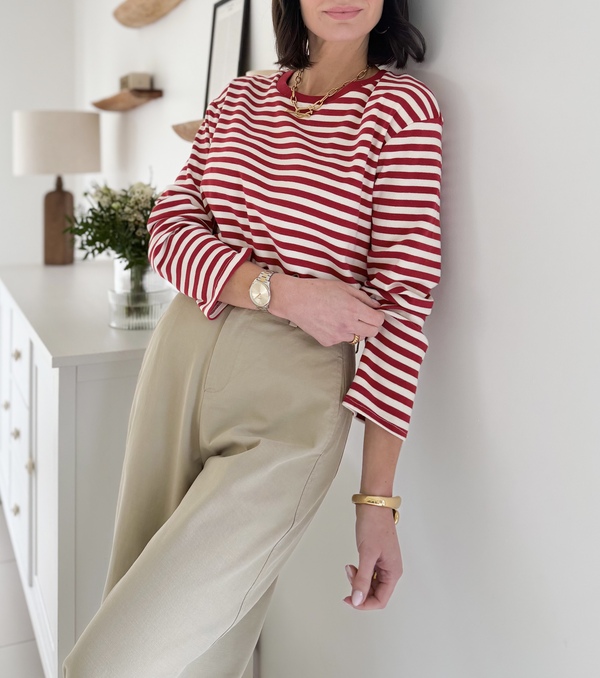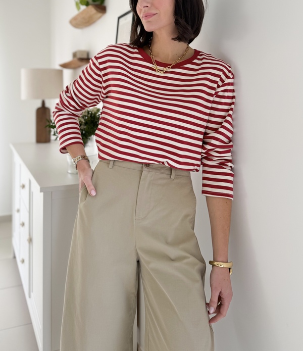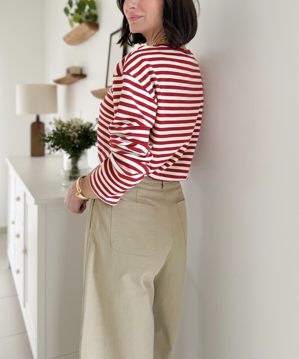 Top marinière à manches longues rouge Encolure ronde Coupe oversize