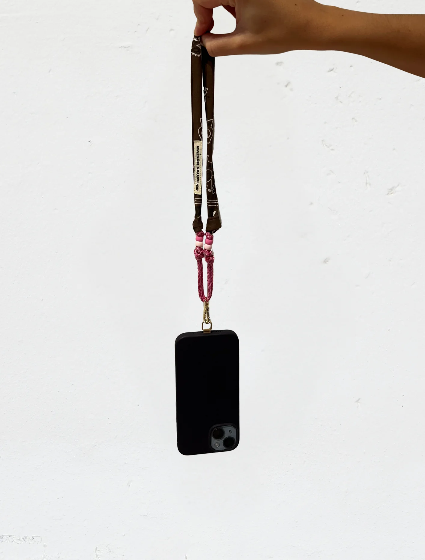 Le mini cordon de téléphone choco sera votre allié parfait. Alliant style et fonctionnalité, le cordon de téléphone en tissu bandana est l’accessoire parfait pour ceux qui veulent garder leur téléphone à portée de main tout en restant tendance. Confectionné à partir de tissu bandana 100 % coton.