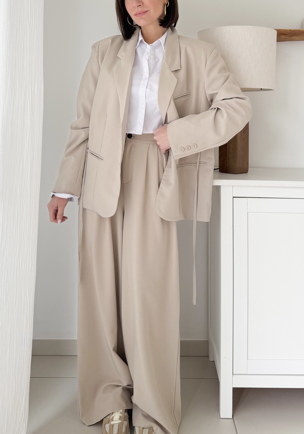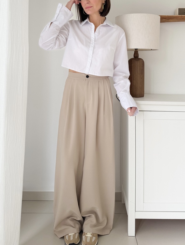 Pantalon à pinces beige Fermeture éclair et bouton Taille élastique au dos