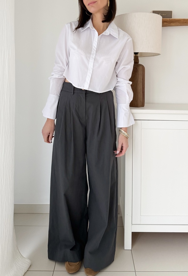 Pantalon large à pinces Fermeture à bouton zippée Taille élastique au dos