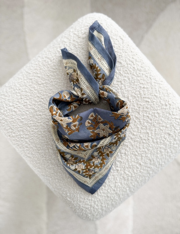 Foulard dessiné par Bellemme, imprimé et réalisé en Inde grâce à la technique du block Print, véritable savoir-faire ancestral.