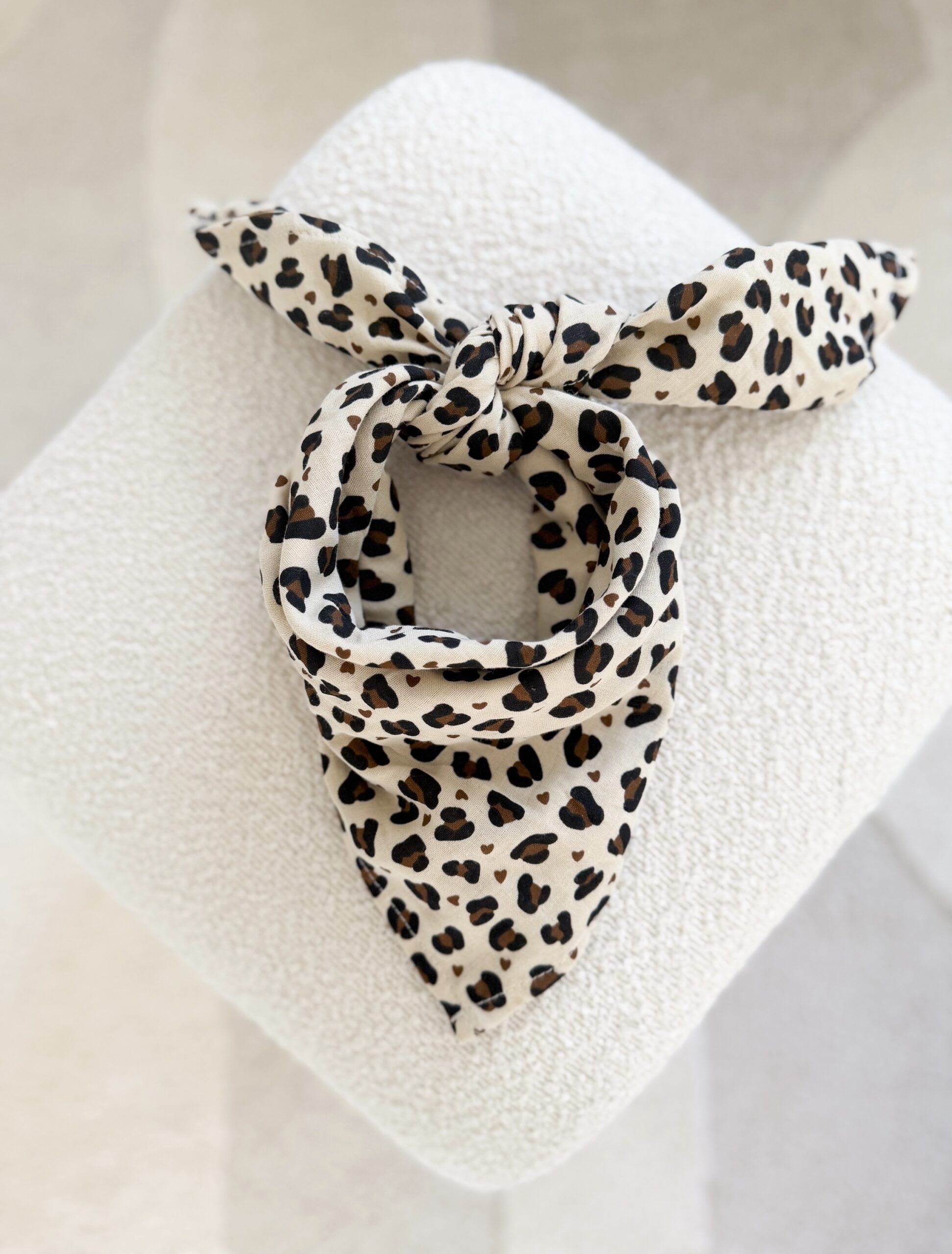 Petit foulard mon petit Léon Imprimé motif léopard cœur beige