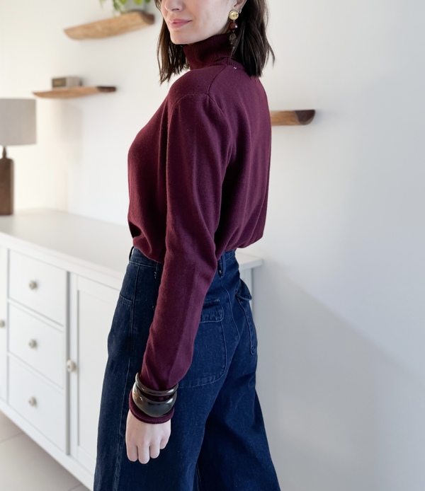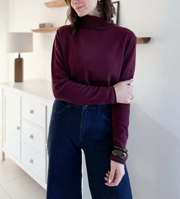 Pull col roulé bordeaux Manches longues Finition bords-côtes