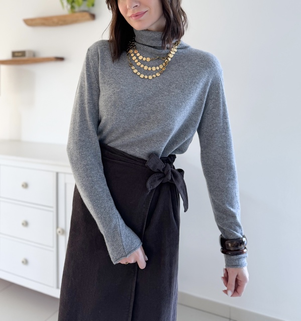 Pull col roulé gris anthracite Manches longues Finition bords-côtes