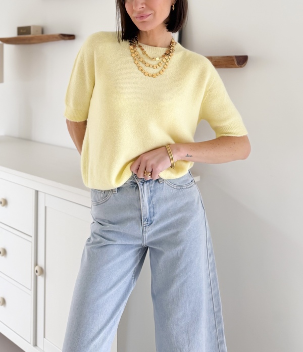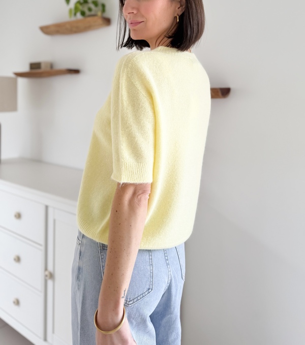 Pull en maille jaune Manches courtes Encolure ronde Coupe légèrement ample