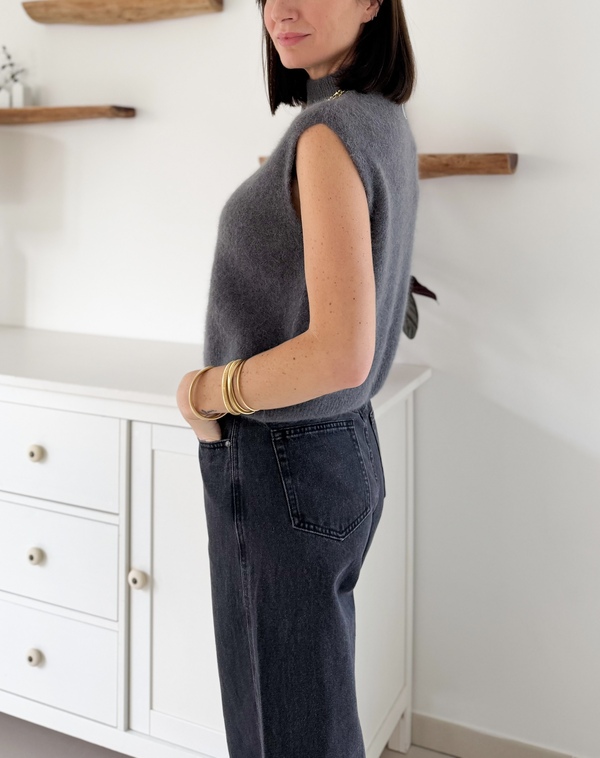 Mélanie mesure 1,70 m et porte la taille unique pour son 36 habituel.