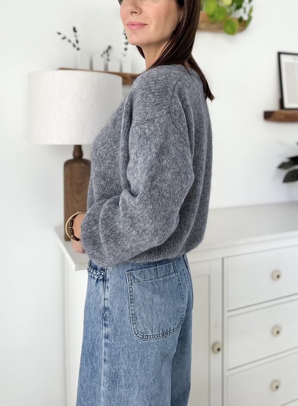 Pull en maille gris Manches longues Encolure ronde Entièrement boutonné