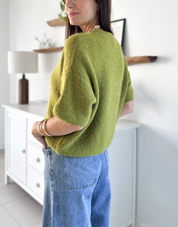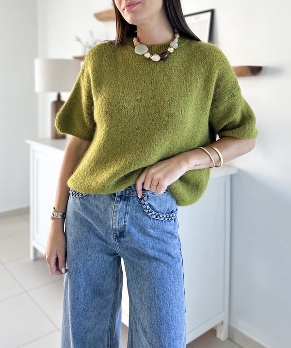 Pull en maille olive Manches courtes Encolure ronde Coupe oversize