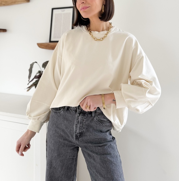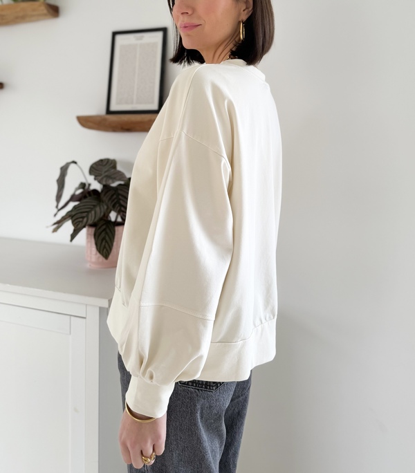 Sweat écru en coton Manches longues Encolure ronde Coupe oversize