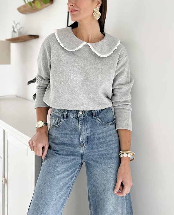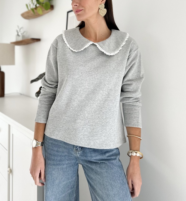 Sweat à manches longues Col claudine avec détail brodé Intérieur tout doux