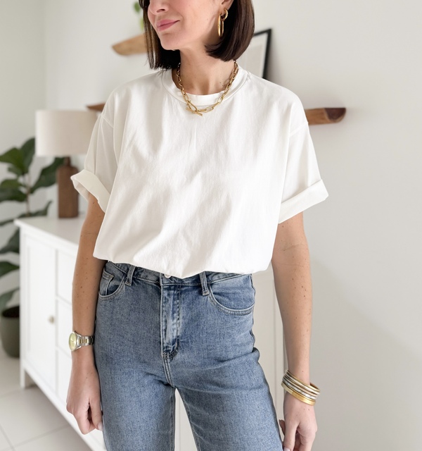Tee-shirt en coton Manches courtes Encolure ronde Coupe oversize