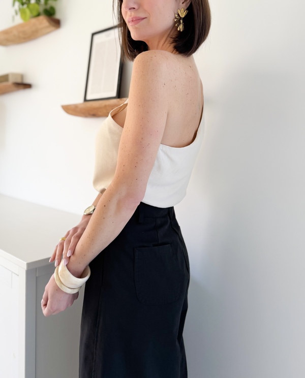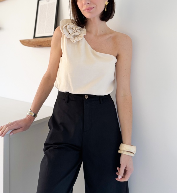 Top asymétrique beige Fleur sur l’épaule droite Fermeture à glissière sur le côté