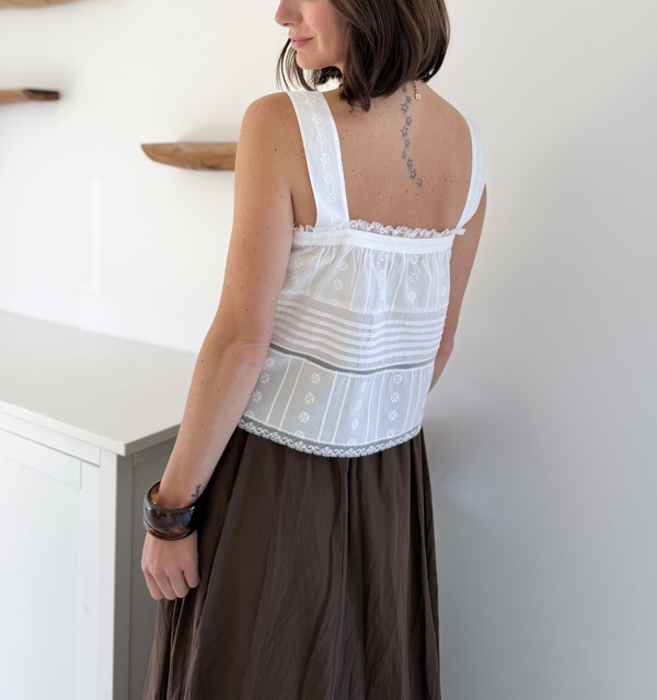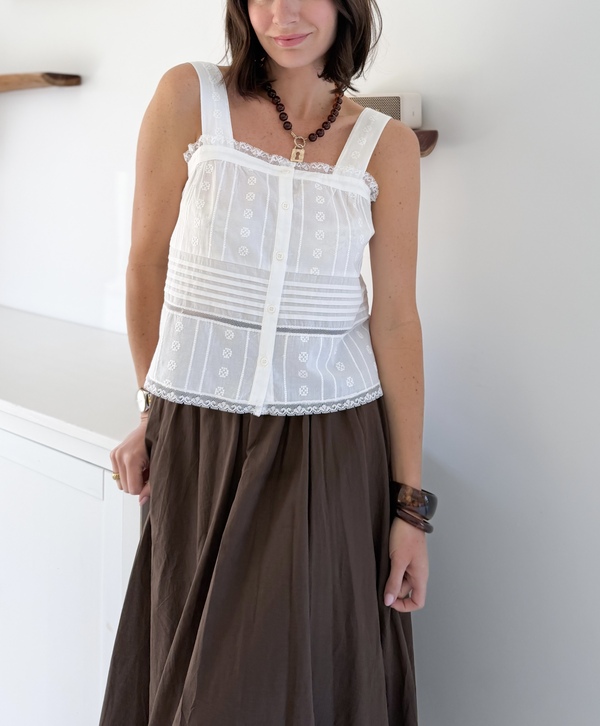 Top blanc à bretelles Entièrement boutonnée Détails brodés