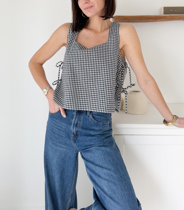 Top vichy Encolure carrée Fentes et liens à nouer sur les côtés