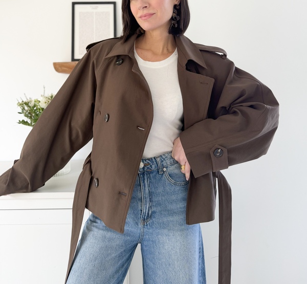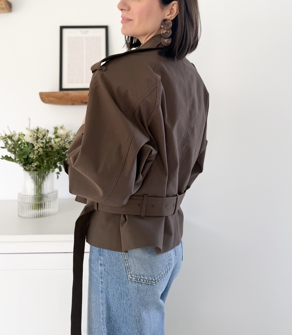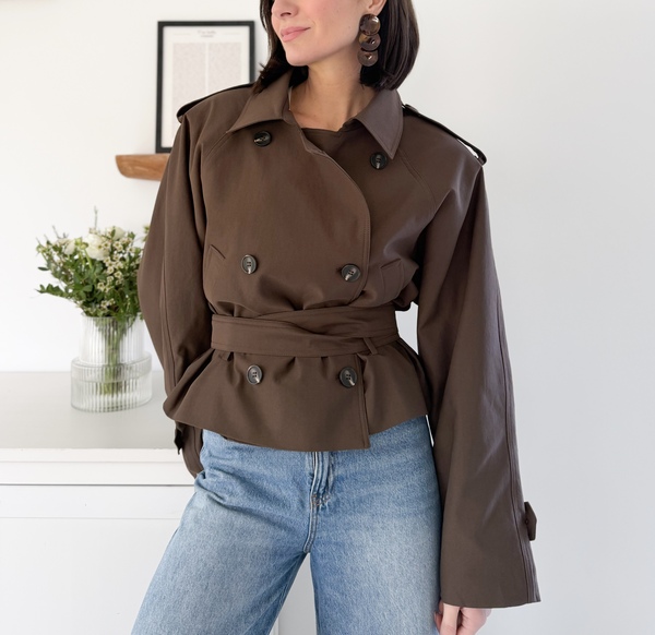Trench-coat court ceinturé marron