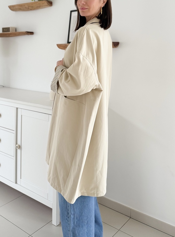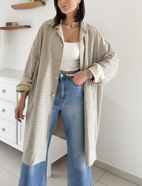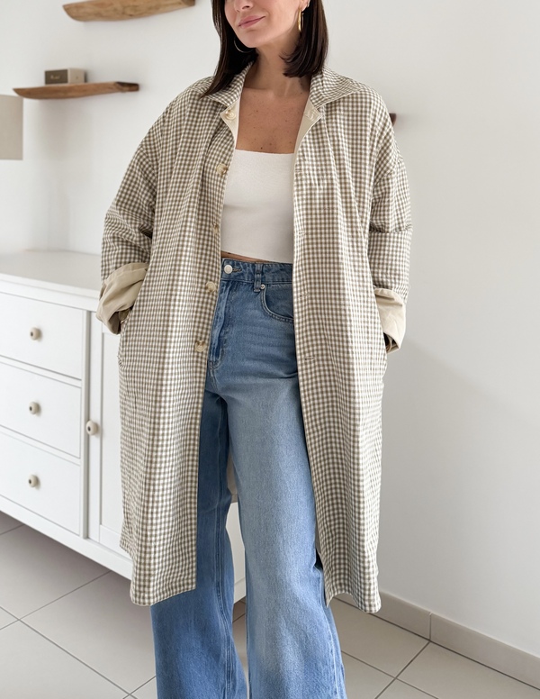 Trench-coat sable réversible Coupe oversize Manches longues Col classique Imprimé vichy