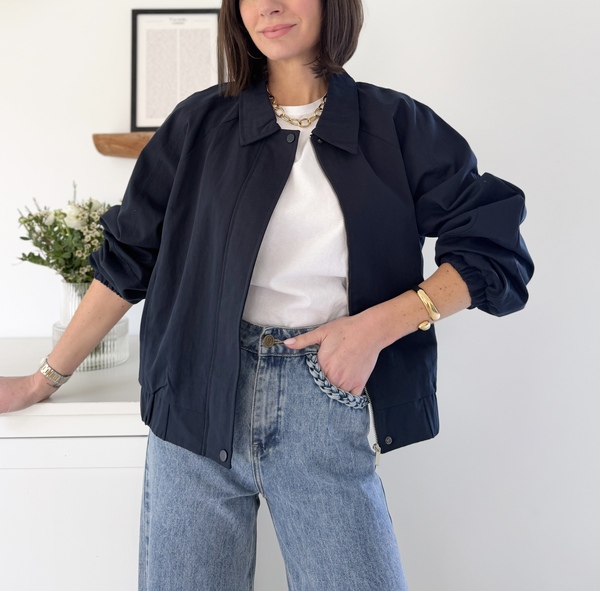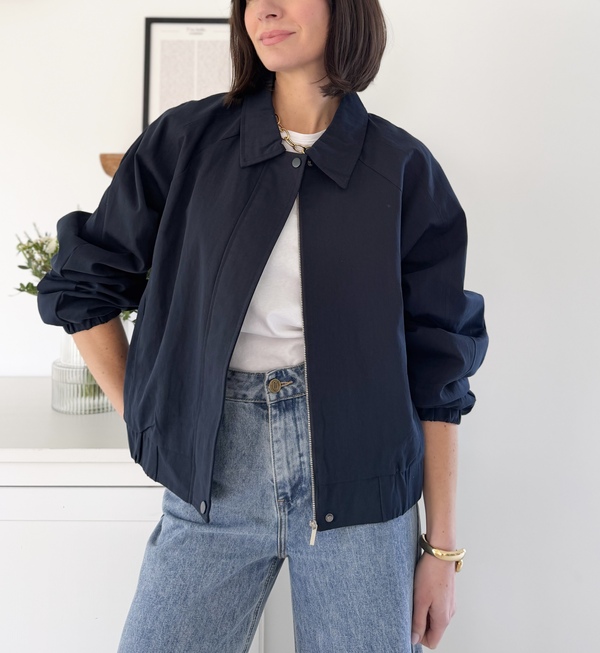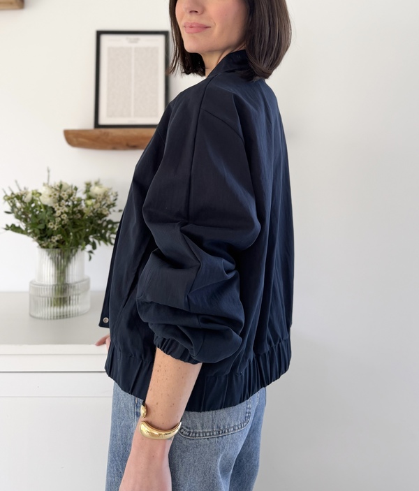 Veste bomber marine Col classique et manches longues Fermeture avant avec boutons-pression Col classique Poches latérales