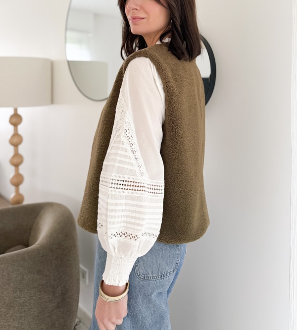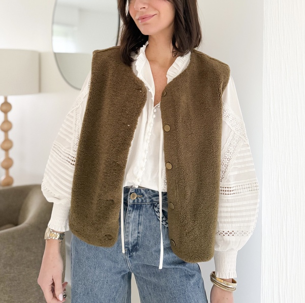 Veste sans manches Effet moumoute Poches latérales Fermeture par boutons